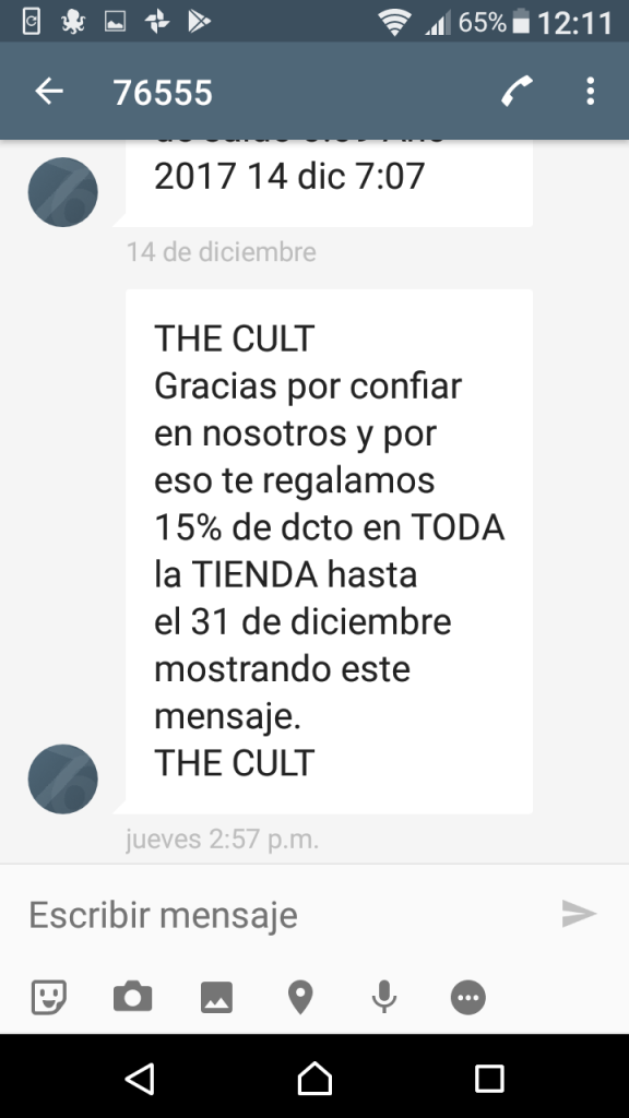 Con THE CULT Desarrollamos sus Campañas de comunicación móvil entregando vía Mensajes de Texto o SMS Masivos sus ofertas especiales a sus clientes especiales, de esta forma sus potenciales clientes reciben información con el Descuento del día en sus tiendas segmentando a sus clientes por tienda.